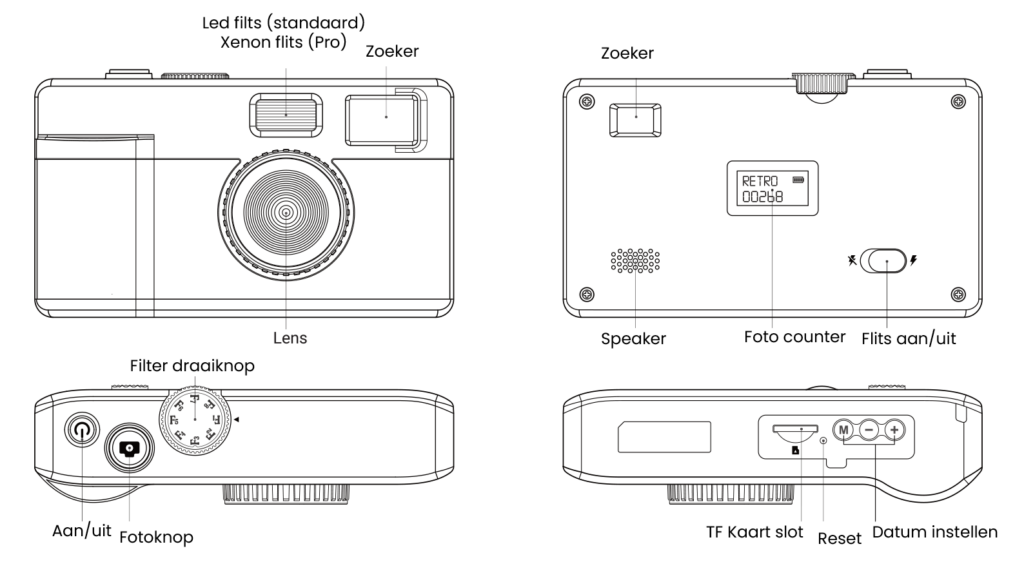 Onze vintage camera’s maken foto’s met een retro digitale look, geïnspireerd op begin jaren 2000. Geen filters achteraf, maar direct die nostalgische sfeer in je foto’s.